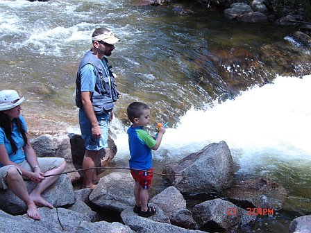 We packed some snacks, the stroller, the sling, sunscreen, a picnic blanket, a magazine for me to read, and Dave’s fishing stuff and headed to the park. The picture above is from two summers ago. Good times.