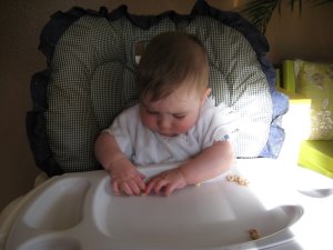 This was about the 17th take of this picture. I have a bunch of sound effects on my camera, and every time I would focus, Jack would hear the camera, look up, and smile. It’s impossible to get candid photos of him! But finally the allure of the cheerio won out, and I was able to capture the intense concentration required to match a forefinger to a thumb to pick up something small.