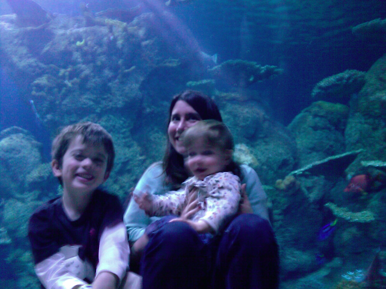 We went to the Aquarium for my birthday and I was sitting with both kids on my lap, posing for a picture in front of the shark tank. It was the area of the aquarium that was the most wide open, with the fewest people and the largest, widest tank you could imagine. I mean, sharks live in there. It was big and spacious. Plenty of room for everyone.