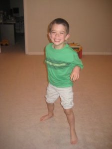 And then, as I was digging through the unfolded clean clothes pile for shorts for Luke, I decided to play a joke on Luke and I handed him a pair of Jack’s pants (size 12 months) to wear instead. He didn’t notice. I had to tell him.