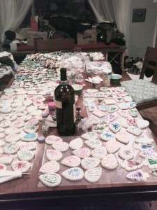 Yesterday was baking day, today: decorating. Tomorrow everything gets boxed up, and Thursday is the sale. I am acting like I have a lot to do with this, but I am only doing a tiny part. My awesome neighbor is in charge and we decorated at her house this evening.