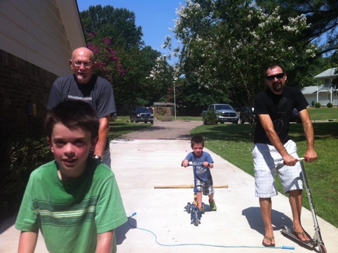 So here are a few pictures of Luke and Jack riding scooters with Grandad.