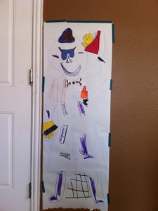 Put the chips in a glass measuring cup and put them in the microwave for 30 seconds. Then stir, and put them back in for 10 seconds at a time, then stir. Repeat until the chips are melted. Tear a 16 inch sheet of waxed paper and lay it flat on your counter. Pour the melted chocolate out and spread it evenly across the paper. Put another layer of waxed paper on top and roll it up and put it in the refrigerator, seem side down for 30 minutes. Don’t add the shards until the cake and icing are cool, because they will melt. When you are ready, unroll the wax paper and the chocolate will break into shards. Use the tallest ones to go around the cake, and put the smaller pieces on top. Try to work with cold hands too, because even the heat of your hands will melt the chocolate.