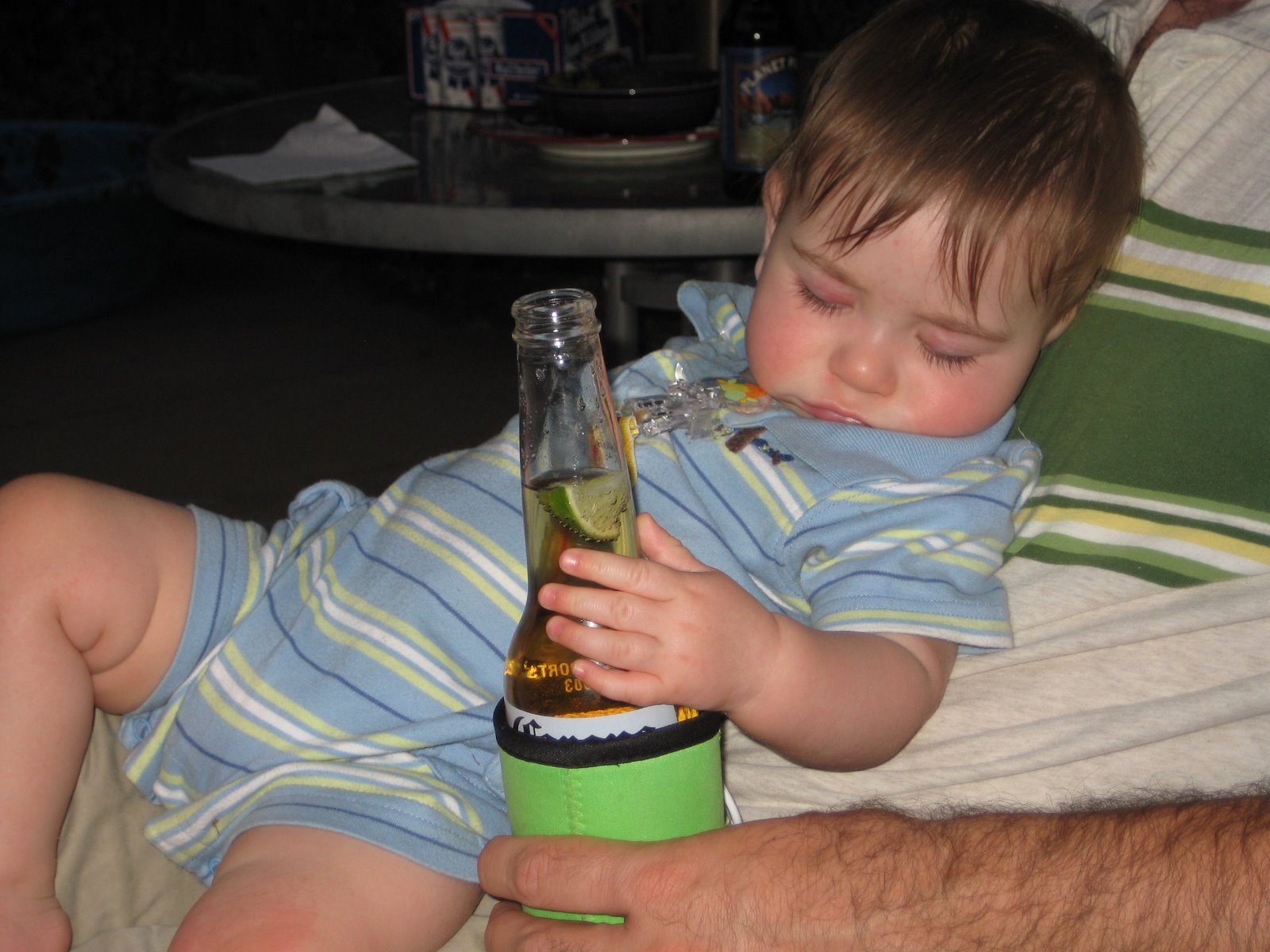 OK, I’ll be honest, this post is just to annoy my co-workers (one of whom is knitting a voodoo doll as I type) by flaunting my sleeping baby. Speaking my my co-workers, it’s time for another get together with Baby Katie, aka Pinchy, because I get a lot more hits when I feature Jack’s girlfriend. I mean because we have such a good time!