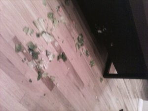 So I thought my story needed pictures. Or to be less embarrassing, but too late for that! I was gathering all the equipment needed for Body Pump – a step and risers, a mat, weights, etc and I was being careful to bend at the knees because my back had been bothering me. As I carefully bent at the knee to put the risers on the floor, I’m not sure how this happened, but my knee went through one of the risers and remained there as I tried to stand up. Apparently the insides of the risers are made of shards of glass because I got a huge cut on my shin. I thought I was going to barf from the pain, and fortunately, at that moment, I realized I had left my water bottle in the hallway. I casually hobbled out and tried to walk it off, suppressing tears, shame, and obscenities.