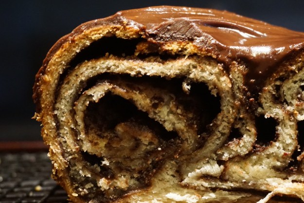 If you read Food and Wine, or look at the cover in line at thegrocery store, this chocolate babka will look familiar. Or maybe it will look a little flatter than it should be. Regardless – find the recipe here. I suggest buying the magazine though because their website is a pain. I veered from the recipe in two places – where it said “let it rise for two hours until doubled in size” I instead let it rise for the amount of time it takes to put kids to bed and watch an episode of The Making of Murderer. That is about 90 minutes, and in that time it rose somewhere between “not at all” and 10%. But it was 10 pm and I wantedto bake it before I went to bed so into the oven it went. Hence the slightly rectangular shape instead of the beautiful squares you see on Food and Wine. I did the glaze in the morning and this is where I made another change. I was out of butter after the almost 3 sticks used in the dough and filling. (I accidentally ate just a salad for lunch a few weeks ago and I have been in a baking frenzy ever since.) So I thought, “ugh! Another stick and a half of butter and 12 ounces of chocolate!” So I used four ounces of cream and four ounces of chocolate (or maybe 6 and 6) for a ganache. I went to bed thinking the loaves were pretty enough without the glaze but in the morning I could see the glaze was necessary.